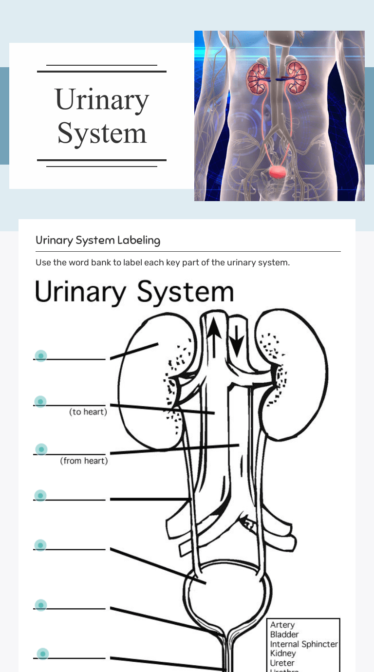 Urinary System Labeling Worksheet : Urinary System :. Learn vocabulary, terms, and more. Major structures included in the labeling are the kidney, bladder, urethra, ureter, and major vessels like the aorta, vena cava, and renal. Urinary system diagrams are illustrations of the urinary system, . Lotz, kidney model, part 1 . Make a diagram of the urinary system from .